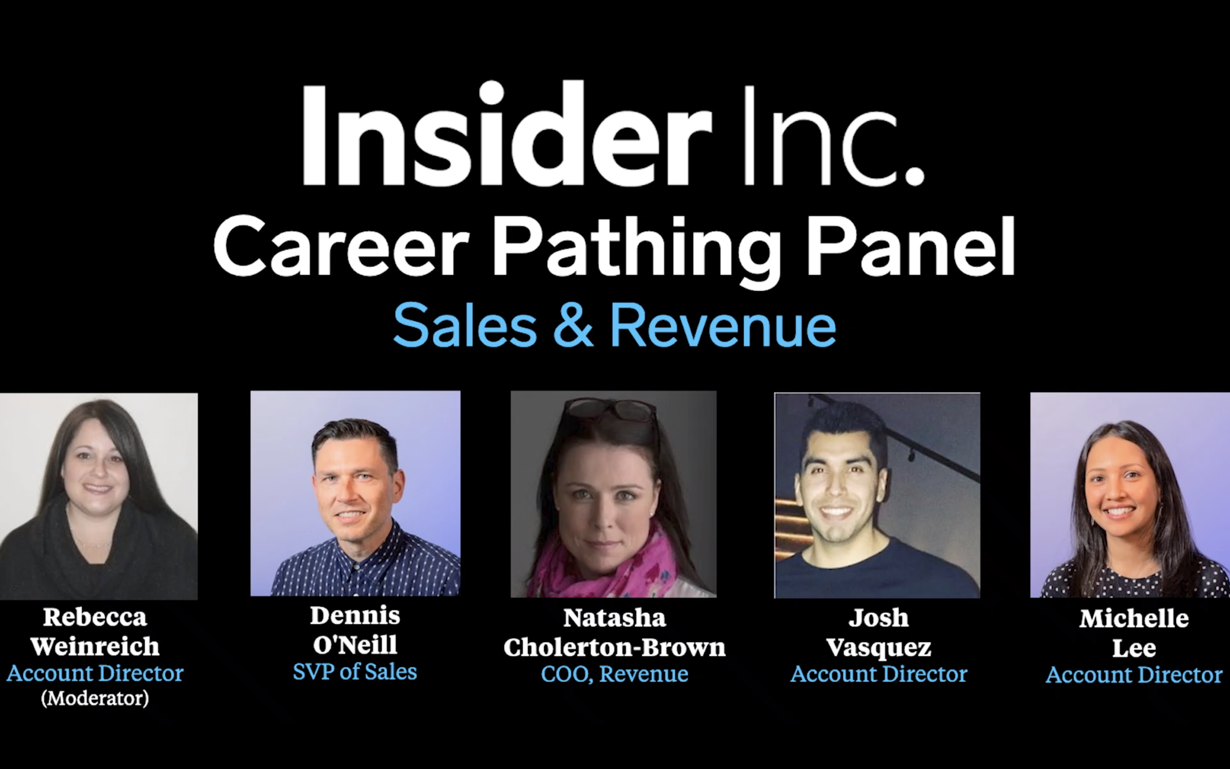 Our Career Pathing Virtual Panel Series is geared towards students and early stage professionals looking to learn more about possible career paths at Insider. Our panelists are all Insider employees who share a closer look at what they do day-to-day, how they got started in their field, and offer advice & applicable skills for anyone looking to get their foot in the door.